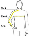 | Chest | 34-36 | 38-40 | 42-44 | 46-48 | 20-52 | 54-56 |